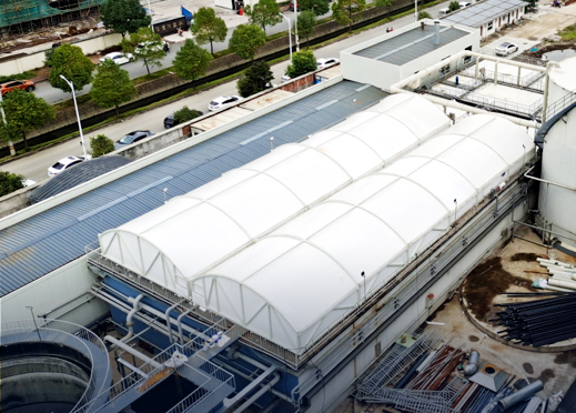 污水池膜結構由于其造型自由輕巧、阻燃、制作簡易、安裝快捷、節能、自潔性等優點,備受環保行業青睞。光滑...